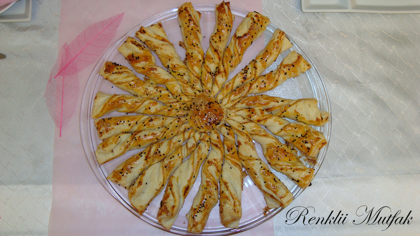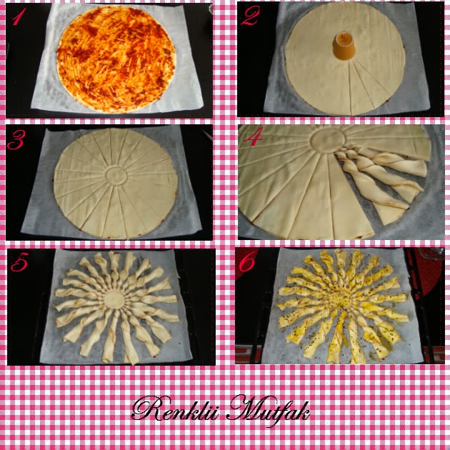 Bugunku tarifim zaman zaman takip ettigim farkli urunlerin oldugu guzel bir yemek blogu olan Fransiz bir bloggerdan ( http://justehistoiredegouter.blogspot.fr/2014/06/feuilletes-torsades-soleil-au-pesto.html )