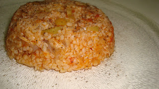 - Pişen domateslere 1 yemek kaşığı salçayı da ekleyip haşlanmış tavuk etini ilave ediyoruz. Arkasından temizlemiş olduğumuz bulguruda içine katarak bir iki karıştırıp tuzunu ve suyunu ekleyerek pişmeye bırakıyoruz.