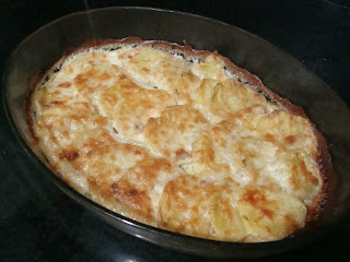 - Borcamı yağladıktan sonra patatesleri sıra sıra dizin. Sarımsakları ince ince kıyın ve içine serpin. ( İsterseniz koymayabilirsiniz ) Üzerine de krema ve sütü birlikte dökün.