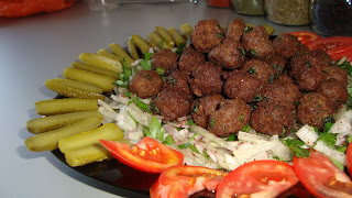 Koftelik malzemelerin hepsini bir kabin icinde bir araya getirerek karistiriyoruz. Iyice yogurulmasi gerekiyor. Daha sonra avucunuzun icinde ceviz buyuklugunde olacak sekilde kofteleri yuvarlayin. Hazirladiginiz kofteleri 1,5 su bardagi aycicek yaginda kizartin. Dilerseniz benim yaptigim gibi altina sogan salatasi yaparak, sicak sicak servis edebilirsiniz.