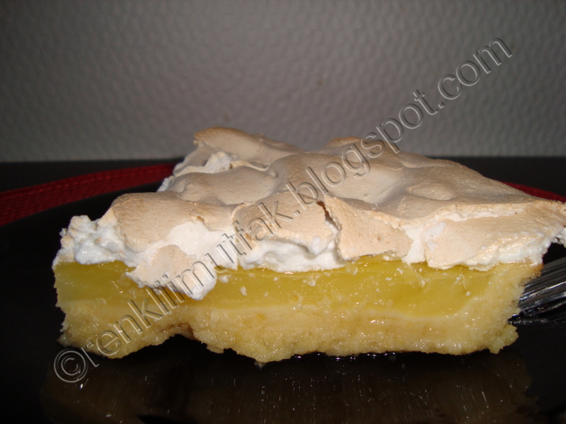 - Mereng icin, ayri bir kasede 3 yumurta akini ve sekeri 15 dk kadar cirpip kar haline getirin ve krema sikacagi ile tartin uzerine sikin.