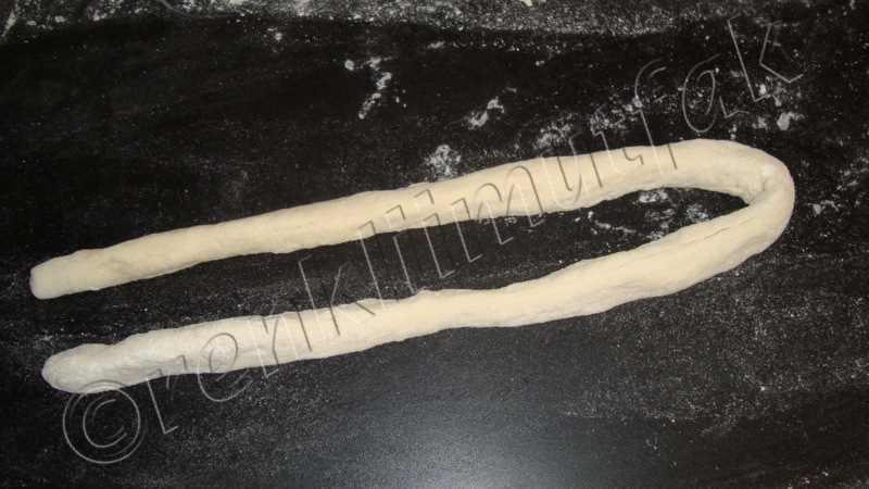 - Mayalanan hamuru uzunca rulo haline getiriyoruz.
