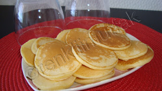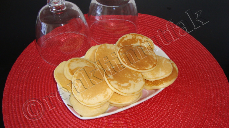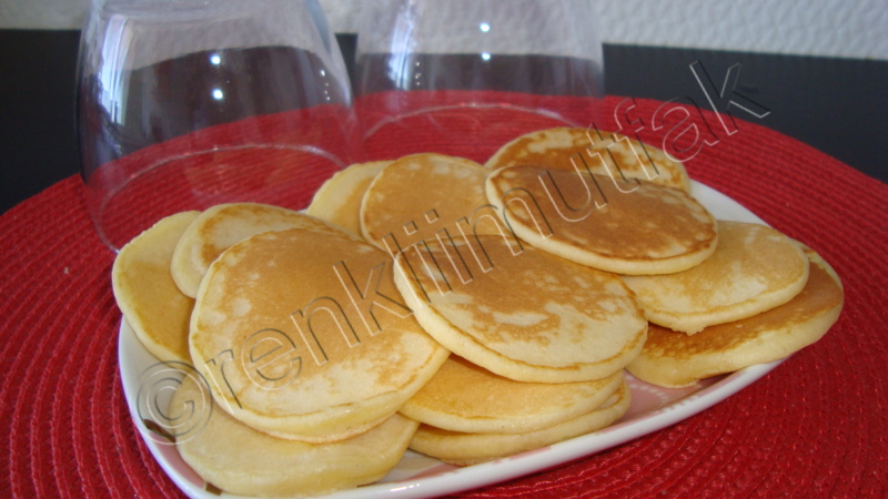 - Tavayi isitin. Hamurdan 1 yemek kasigi kadar alip tavaya dokun. 30-35 saniye bekleyip spatula ile diger yuzunu cevirip pisirin. Tavadan alarak sogumaya birakin.