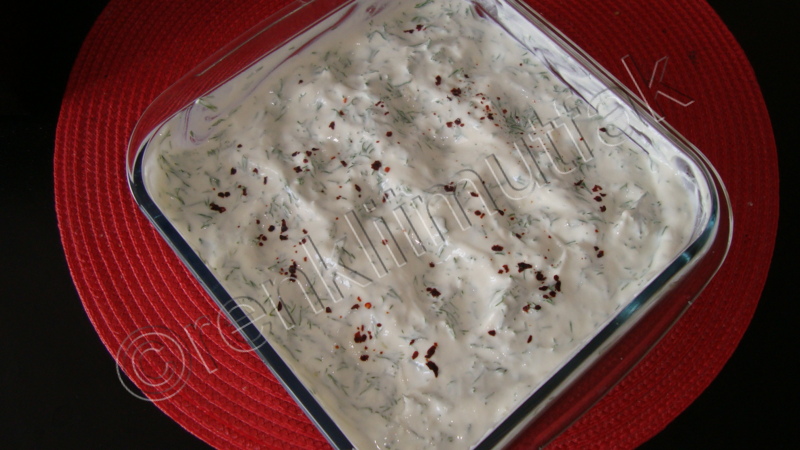 - ince dogranmis dereotunu ve sarimsagi da yogurdun icine ekleyerek tekrar karistirin.