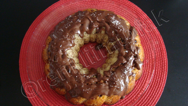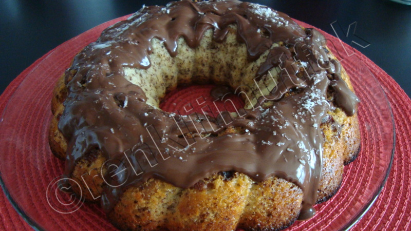 - Seker ve yumurtayi mikserle 5 dk cirpin. Icine once sivi sonra kati malzemeleri ilave edin ve karistirin.
