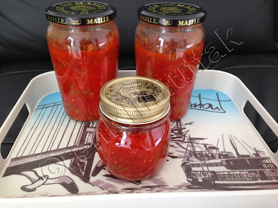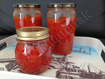 - Menemen kaynamaya başladıktan yaklaşık 10-15 dakika sonra hala kaynıyorken temiz kavanozlara 1-2 parmak bosluk kalacak şekilde doldurun.