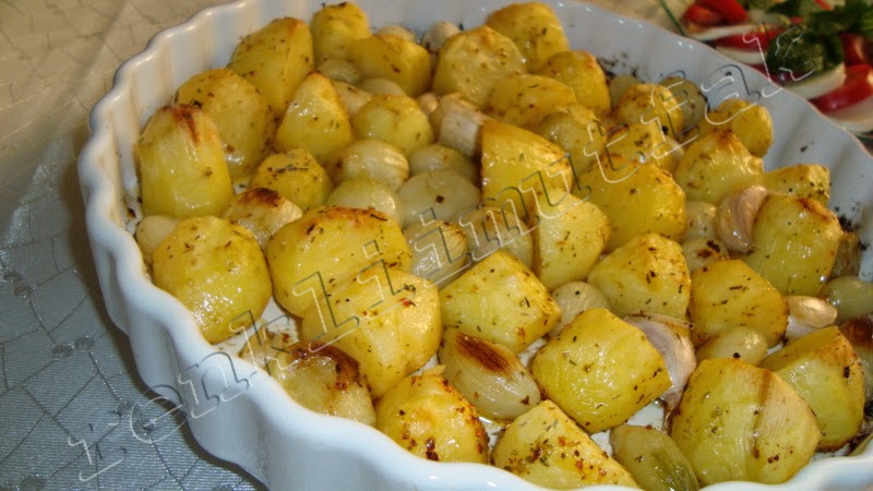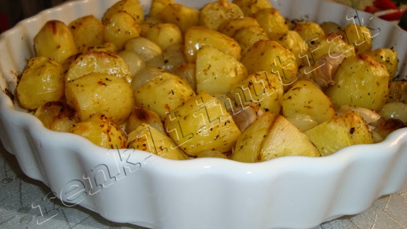 En sevdiklerimden.Sarimsaklar biraz fazla degilmi?Kabuklu olduklari icin aromasi pateteslere geciyormu?
