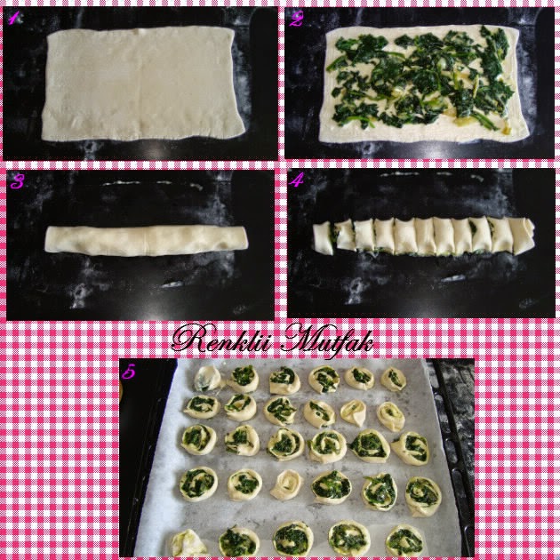 - Hamuru yavasca rulo halinde sarin ve 1 parmak kalinliginda dilimlere kesin. Diger hamurlara da ayni islemi yaptiktan sonra her bir dilimi yagli kagit serili firin tepsisine dizin. Kalan yogurtlu harci da dilimlerin uzerine surun.