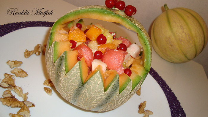 - En son hazirladiginiz meyveleri kavunun icine doldurun.