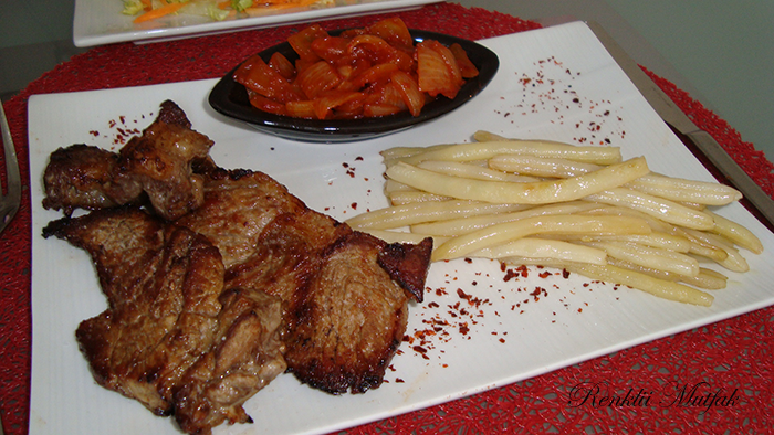 • Son olarak da etleri zeytinyagi eklediginiz tavada onlu arkali pisirin. Dilerseniz tavada yuksek ateste muhurleyip 5-10 dakika da 200 derecelik firinda da pisirebilirsiniz.