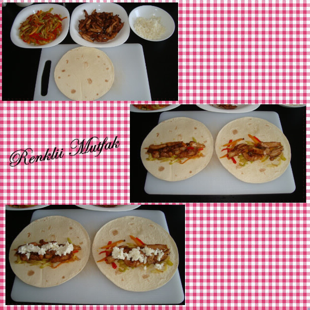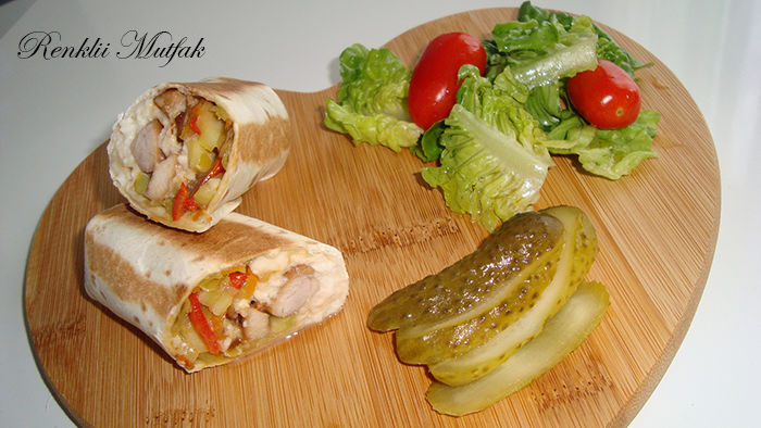 - Lavas ekmegini tezgaha alin ortasina hazirladiginiz sebze soteden paylastirin. Sebzelerin uzerine hazirladiginiz tavugu paylastirin ve bir kasik kadar mozzarella peynirinden serpin. Lavasi yuvarlayarak durum haline getirin.